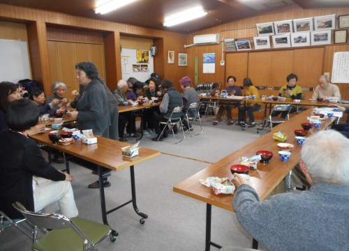 体操で体を使った後は茶話会で一休み、団らんの時間もあります。